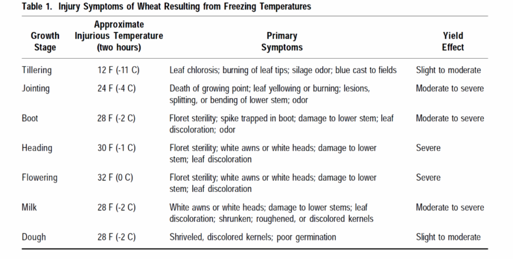 Many areas have expressed concern whether or not this will damage their wheat crop. There are three main things that contribute to spring freeze injury: