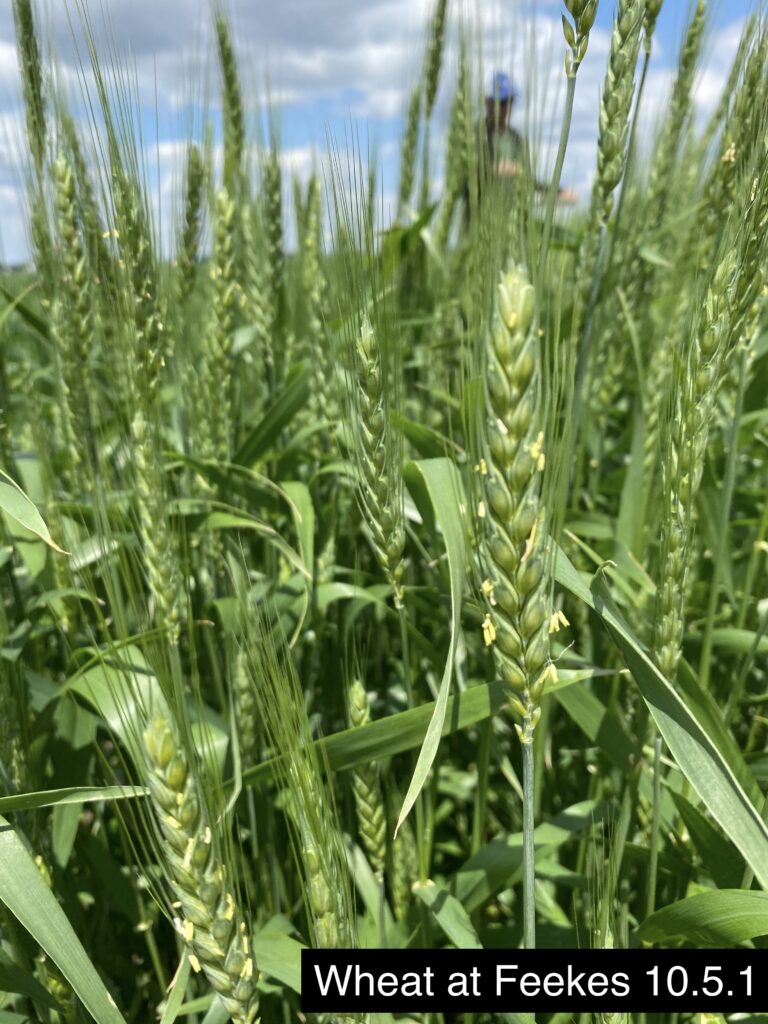 The final application of the season is one of the most important passes we will make during the growing season:  fungicide at bloom.  This is the money shot.  This application is mainly targeted at suppressing fusarium head blight (FHB), aka head scab.  FHB is the most damaging disease to wheat in the eastern US.  FHB is also directly correlated in the development of vomitoxin (DON). Fungicides at bloom protect yield and grain quality. They also enhance total plant health by reducing ethylene gas and controlling other diseases such as stripe rust, leaf rust and glume blotch.